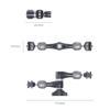 Uçak sınıfı alüminyum ve paslanmaz çelikten yapılmış SmallRig Rozet Kolu (7 inç) 4194, monitör, LED video gibi özellikle bükülme önleyici deliklere sahip bu tür aksesuarların güvenli bir şekilde takılması için her iki ucunda 1/4"-20 vidalar ve gerilebilir pimler içerir ışıklar, mikrofonlar, cep telefonları, iPad'ler, aksiyon kameraları. Kelebek vida, aksesuarların kilitlenmesine yardımcı olur ve daha fazla sıkma için altıgen anahtar için deliklere sahiptir ve 360 ​​derece ayarlanabilen bilye kafaları, sürtünmeyi ve dayanıklılığı artırmak için spiral bir desenle birlikte gelir; 3 kg'a kadar yük Paslanmaz çelik rozet bağlantısında, açının daha kolay ayarlanması için bir yay vardır. Yerleşik itme bilyeli, ergonomik olarak tasarlanmış, kaymayı önleyici başparmak kolu, pürüzsüz ve rahat bir his verir ve kolu ve topu hızlı bir şekilde kilitler. Bu rozet kolu daha fazla sağlamlık ve dayanıklılık için CNC ile işlenmiştir ve ayrıca çizilmeleri önlemek için her iki aksesuar yuvasında da pedlerle donatılmıştır.