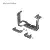 Sony FX3 / FX30 4770 için SmallRig HawkLock Hızlı Çıkarma Kafes Kiti, kamerayı korumak ve aksesuar montaj noktaları sağlamak için tasarlanmıştır. Modüler kafes bir NATO rayı ve U şeklinde bir kafesten oluşur. NATO rayı üstte iki adet 1/4"-20 vida ile sabitlenir ve orijinal XLR üst kulpunun takılmasına izin vermek için çıkarılır; U şeklinde kafes, bükülmeyi önlemek için her iki tarafta ve altta 1/4"-20 vidalarla sabitlenir ve çizilmelere karşı bir yastık bulunur. Pil kapağında, bir menteşe kolu küçük parmak için geliştirilmiş bir kavrama deneyimi için kameranın eğrisine uyar. Özel bir HDMI kablo kelepçesi, kararlı sinyal iletimi sağlamak için arayüzleri korur. Patentli kendi geliştirdiği hızlı çıkarma yapısı (HawkLock olarak adlandırılır) soğuk ayakkabıyı, NATO rayını ve Arca-Swiss plakasını kaplar. Üst Sap 4483 , Yan Sap 4485 , Arca-Swiss Kelepçesi 4486 vb. gibi HawkLock eko-aksesuarlarıyla birlikte kullanılarak, sökme ve yeniden takma verimliliğini artırmak için pürüzsüz kayma ve kendi kendini kilitleme elde edilir. Aynı zamanda, geleneksel soğuk ayakkabı, NATO Kelepçesi ve Arca-Swiss Kelepçesi eko-aksesuarlarıyla uyumludur. Ek olarak, kafeste yerleşik 1/4"-20 dişli delikler, ARRI 3/8"-16 Yerleştirme Deliği, 1/4"-20 yerleştirme delikleri, QD soketi ve kayış yuvası bulunur ve profesyonel yaratım için Magic Arm 3873 , Üst Sap 2165C , Çubuk Kelepçesi 3598 , QD Omuz Askısı, El Askısı 3848 ve Omuz Askısı PSC2428 gibi aksesuarlarla genişletilebilir . Kolay montaj ve demontaj için manyetik anahtar da ürüne dahildir.