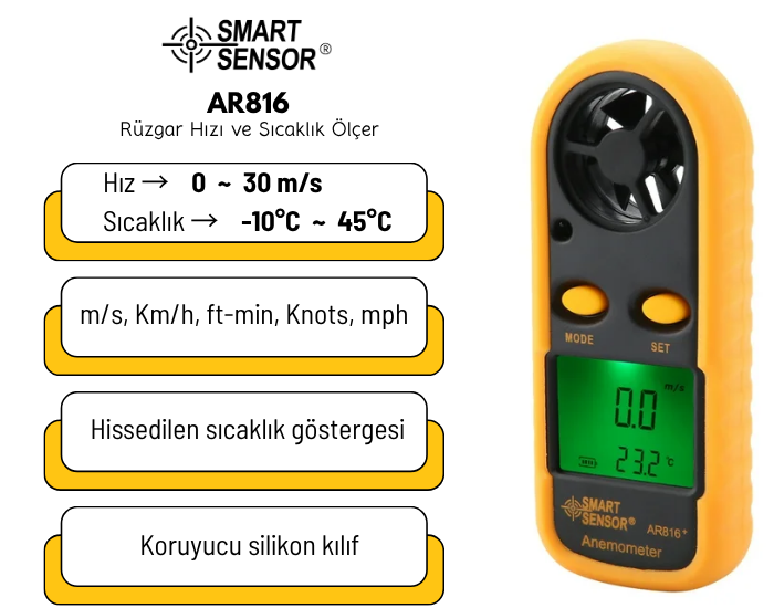 SMART SENSOR AR 816 ANEMOMETRE ÖZELLİKLERİ