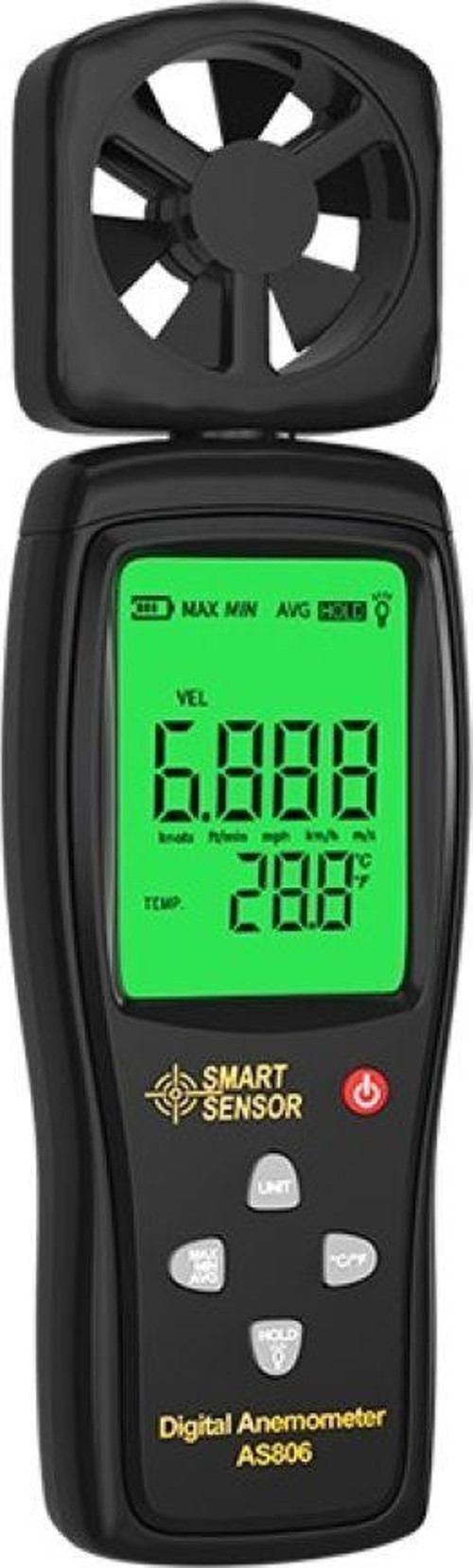 Smart Sensor AS 806 Anemometre; rüzgar hızını ve sıcaklığını hızlı bir şekilde ölçebilen anemometre çeşididir. Geniş LCD ekranında ölçümlerinizi grafiksel olarak artan ve azalan olarak takip edebilirsiniz.