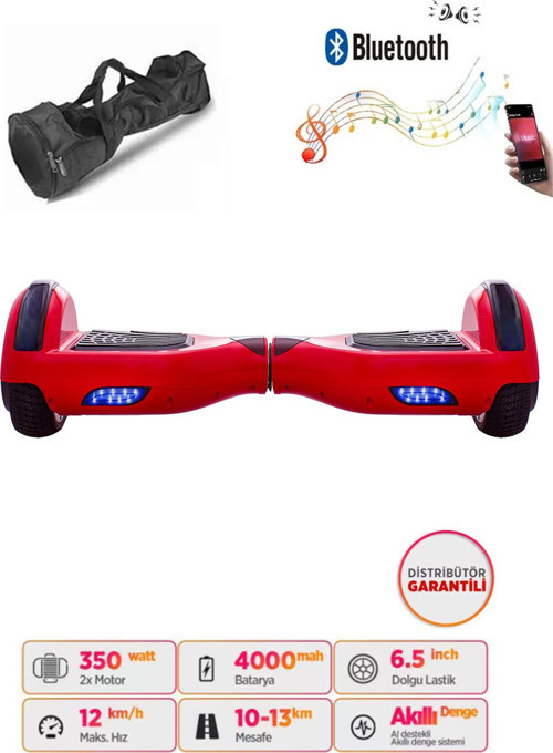 Citymate Smart Store Hoverboard Elektrikli Kaykay Bluetooth Hoparlörlü 6.5 Inch Çanta Hediyeli Kırmızı