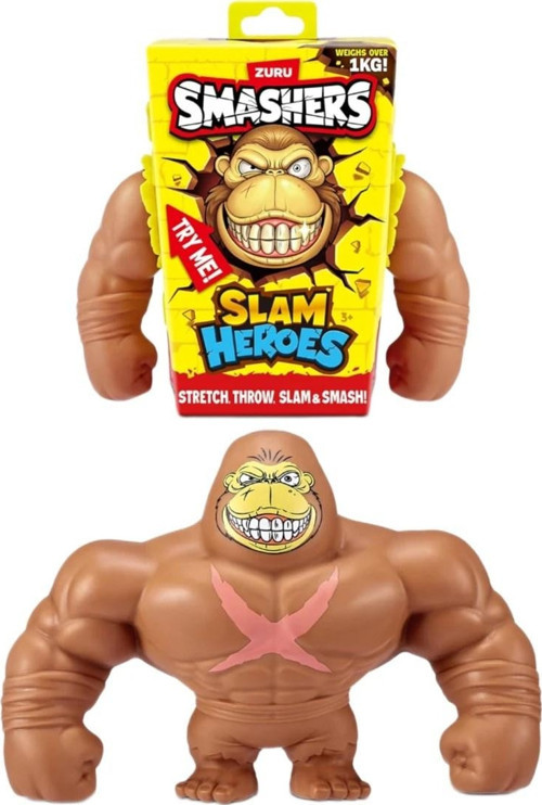 Esnek gövde yapısı ve dayanıklı silikon malzemesiyle aktif oyunlara uygun bir tasarım sunan bu model, çocukların enerjisini harekete geçiren dinamik bir oyun deneyimi yaşatır. Smashers Slam Heroes Esneyen Figür Brown Gorilla çekme, sıkma, zıplatma ve fırlatma hareketlerine verdiği tepkilerle oyunu daha eğlenceli hâle getirir. Şekil değiştirebilen yapısı sayesinde tekrar eski formuna döner ve uzun süreli kullanım sağlar.