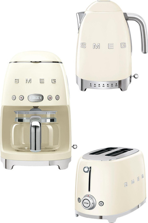 Smeg 50's Style Krem Isı Ayarlı Kettle - 1x2 Ekmek Kızartma Makinesi Ve Filtre Kahve Makine Seti