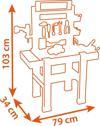 Büyük ve sağlam tezgah gerçek bir çalışma tezgahı gibi tasarlandı. Onunla küçükler, ustaların dünyasını eğlenceli bir şekilde keşfedebilir ve çeşitli araçları tanıyarak tecrübe edinebilir.