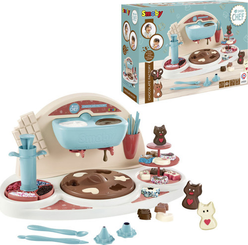 Smoby Chef Çikolata Fabrikası ile çocuklar hayal gücünü tatlı bir serüvene dönüştürüyor! Bu yaratıcı oyun seti ile kendi çikolatalarınızı yapabilir, lolipoplar hazırlayabilir ve dekoratif sunumlar gerçekleştirebilirsiniz. Benmari usulü eritilen çikolatalar kalıplara dökülerek şekillendiriliyor. Şırınga ve dekorasyon uçları sayesinde farklı süslemeler yapabilir, çikolataları özel ambalajlara koyarak sergileyebilirsiniz.