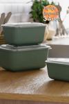 - Üçlü set halinde sunulan bu saklama kapları, iç içe geçerek mutfağınızda az yer kaplar.