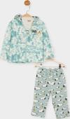 Ürün Özellikleri: Bisiklet yaka, uzun kol, baskılı, üst, kapüşonlu, boydan fermuarlı, uzun kol, baskılı, cep detaylı hırka, beli lastikli, metraj baskılı, pantolon 3'lü takım
