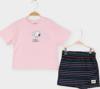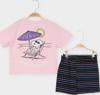 Ürün Özellikleri: Bisiklet yaka, kısa kol, arkası baskı ve nakış detaylı tişört, beli lastikli, etekli şort 2'li takım