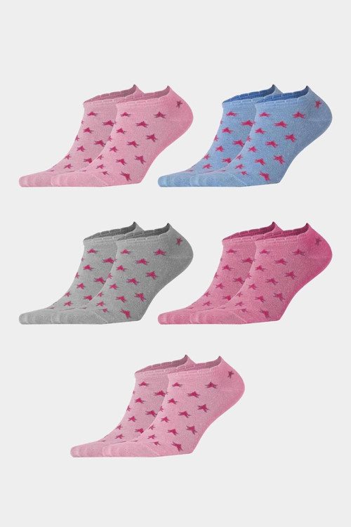 Socksmax Kadın 5 Çift Yıldız Desenli Patik Çorap - 1717 Ürün İçeriği : %75 Pamuk %23 Poliamid %2 Elastan -Kaliteli ipliklerden üretilen patik çoraplar günlük kullanıma uygundur.
