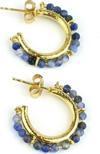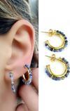 Sodalit taşlı 925 ayar gümüş üzerine altın kaplama Yarım Halka Küpe