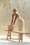 Aynı desenden beli lastik detaylı, yüksek belli uzun etek. Astarsız, hafif ve dökümlü kumaş.