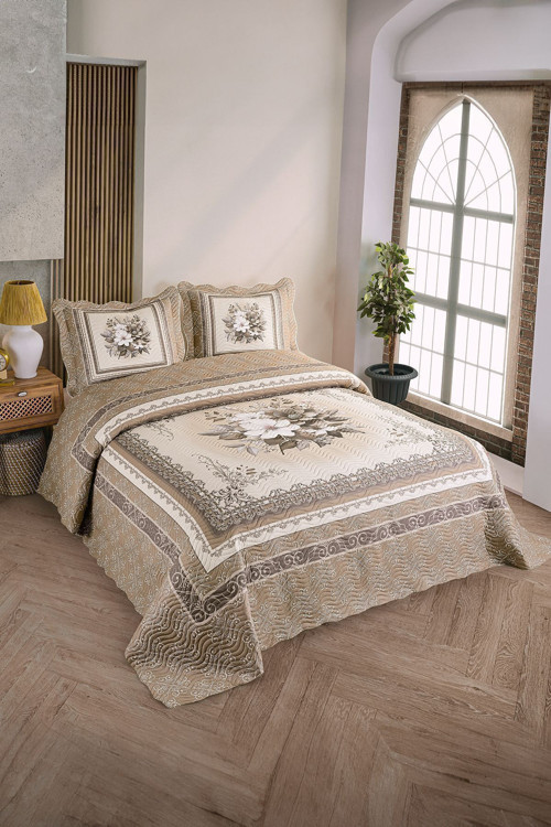 - Klasik ve şık tasarımıyla yatak odanızın atmosferini zenginleştiren geometrik desenli çift kişilik kapitone yatak örtüsü.