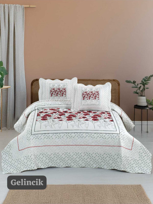 Sofline Çift Kişilik Kapitone Yatak Örtüsü, Klasik Desenli Model - Gelincik (250 X 260Cm)