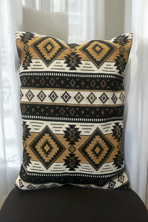 Kırlent kılıfı kaliteli kilim kumaşından üretilmiştir. Nostaljik tasarımı ile modern dekorasyonlara eşsiz bir uyum Kilim desenli kırlent yüzünün ebatı:45x45 cmdir Fermuarlı Kırlent kılıfı