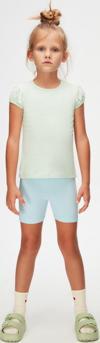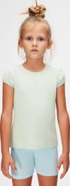 Soft Yeşil Basic Kız Çocuk Sıfır Yaka Karpuz Kol Tişört