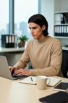 Soğuk kış günlerinin vazgeçilmezi olacak bu erkek triko kazak, regular kalıbıyla her bedene uyum sağlayan rahat bir kesim sunar. %42 Polyester, %40 Viskoz ve %18 Poliamid materyal bileşimi sayesinde üstün yumuşaklık ve sıcaklık hissi vaat eder. Kahverengi rengi ve düz deseni, klasik ve modern tarzı bir araya getirerek gardırobunuzun joker parçası olmaya adaydır. Baskısız ve cepsiz tasarımı, minimalist bir estetik anlayışını yansıtırken, "Cool & Comfort" personasına hitap eder.