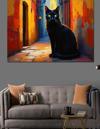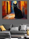Karizmart Sokaktaki Siyah Kedi Dekoratif Kanvas - Mdf Ahşap Tablo