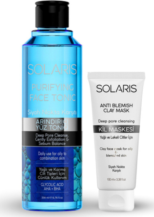 Yağlı ve problemli ciltlerde yağ ve nem dengesi sağlar. Solaris Anti Blemish Clay Mask Nasıl Kullanılır Temizlenmiş nemli yüze SOLARIS ANTI BLEMISH CLAY MASK uygulayın. 10-15 dakika kadar bekletin. Ilık suyla durulayın ve hafifçe kurulayın. En iyi sonuç alabilmek için haftada bir kez ve düzenli kullanınız. Solaris Anti Blemish Clay Mask Kullanırken Dikkat Edilmesi Gerekenler Uyarılar: Ürünün göz ile temasından kaçınınız, göze teması durumunda bol su ile yıkayınız. Oda sıcaklığında ve kendi ambalajında saklayınız. Bilek içerisinde test ederek kullanınız.