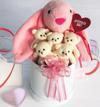 - Ürün İçeriği: 1 Adet 45 cm Sevimli Peluş Bunny Tavşan, 5 adet Premium Yumoş Krem Peluş Ayıcık, Seviyorum Seni temalı Kalp tasarımıyla özel 18 cm lik Silindir kutuda.