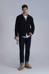 Ateş Triko Erkek Fermuarlı Cep Detaylı Hakim Yaka Yün Hırka 4491 Lacivert - Image 1