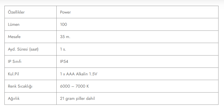 - Pil sadece bir adet AAA alkalin pil ile çalışır
