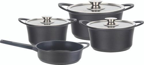 Ürün bilgisi " döküm tencere seti 7 parça." Alüminyum döküm set 7 parça. Üniversal taban, indüksiyon için uygundur. Şunlardan oluşur: 1 x cam kapaklı tencere 20 cm yaklaşık 2,5 litre 1 x cam kapaklı tencere 24 cm yaklaşık 4,5 litre 1 x cam kapaklı tencere 28 cm yaklaşık 7 litre 1 x kızartma tavası 28 cm yaklaşık 3,5 litre;