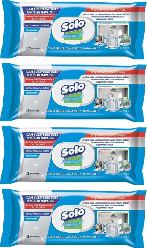 Solo Aquablock Cam Yüzeylere Özel Temizlik Havlusu 30'lu x 4 Adet