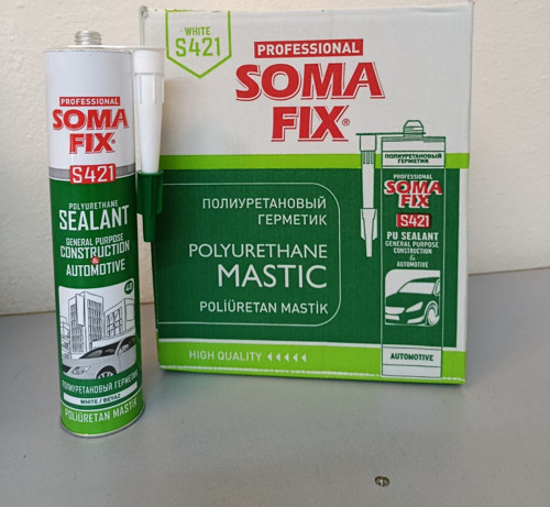 Uygulama Alanları:Somafix Poliüretan Genel Amaçlı İnşaat Otomotiv Mastiği S411 yalıtım ve birleştirme ile ilgili bütün işler için kuvvetli ve çok amaçlı yapıştırıcı ve sızdırmazlık malzemesidir. (bütün çimento bazlı malzemeleri, tuğlaları, seramikleri, camları, metal, tahta, emayeli yüzeyler polyester, akrilik reçineleri, plastikleri kapsayan çok çeşitli materyaller için) Tahta, metal veya plastik pencere ve kapı çerçeveleri, çatı malzemeleri, contalar ve kaplamalar, esnek havalandırma boru izolasyonunda, hafif yapı malzemelerinin montajı, konteynerler, tanklar ve silolarda kullanılır.