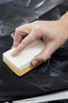 Üst tarafı sert, elle tutmaya ve bastırmaya uygun, alt tarafı gözenekli olup cilayı yüzeye yedirmeye uygun tasarlanmıştır.