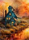 Sonbahar Evi Ve Manzara Art Mdf Tablo 25cmX 35cm