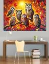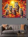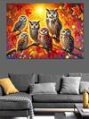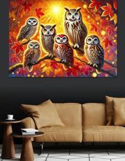 Sonbahar Temalı Baykuşlar Dekoratif Kanvas - Mdf Ahşap Tablo