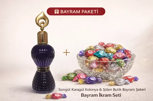 Bayram ziyaretlerinde misafirlere sunulan en geleneksel ikramların başında kolonya ve bayram şekeri gelir. Songül Karagül kolonyası ve 500 gr Şölen bayram şekeri ile hazırlanan bu bayram paketi, misafir karşılamaları ve bayram ziyaretleri için ideal bir ikram setidir. Karışık sert bayram şekeri ve meyve aromalı jöle şeker çeşitlerinden oluşan Şölen bayram şekeri, bayram günlerinde çocukların ve misafirlerin en çok tercih ettiği ikramlar arasında yer alır. Kolonya ve bayram şekeri paketi, bayram ziyaretlerinde misafir ikramı olarak kullanılabileceği gibi hediyelik bayram paketi olarak da tercih edilir. Özellikle bayram şekeri arayanlar, kolonya ve bayram ikram paketi isteyenler veya misafir ikram seti arayan kullanıcılar için pratik ve geleneksel bir bayram hediyesi seçeneği sunar.
