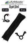 ArtMaster Şönil Siyah 30 cm 25 Li 1 Paket Renkli Tüylü Tel Şönil Pipo Temizleyici Okul Öncesi Anasınıfı Kreş Hobi Eğitici