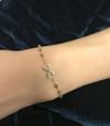 Ona olan sevginiz hiç bitmesin diye minik altıntopları ile süslenmiş sonsuzluk bilekliği çok uygun fiyatı ile Ariş Pırlanta altın koleksiyonunda… 19 cm olarak üretilen bilekliği, istediğiniz ölçüde sipariş verebilirsiniz.