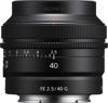 Klasik geniş, normal odak uzaklığına sahip bir Sony lensi olan FE 40mm f / 2.5 G, ultra kompakt form faktörüyle karakterizedir. Çok yönlü odak uzaklığı, sokaktan manzaraya, portreye ve belgesel konulara kadar her şeyi çekmeye uygundur ve yüksek derecede keskinlik ve netlikle, iyi düzeltilmiş görüntüler için gelişmiş bir optik tasarıma sahiptir. Ek olarak, ultra kompakt form faktörü, herhangi bir zamanda elinizin altında olmasını zahmetsiz hale getirir.