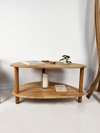 Yaşam alanlarınıza sıcaklık ve şıklık katacak bu doğal ahşapiki raflı orta sehpa, zarif tasarımıyla dikkat çekiyor. Organik formdaki üsttabla ve alt raf, hem estetik hem de işlevsel bir kullanım sunar.Kitaplarınızı, dekoratif objelerinizi rahatça yerleştirebileceğiniz geniş yüzeyi ile salonlarınıza ferahlık kazandırır.