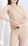 Şortlu Ayrobin takım bej, gardırobunuzun vazgeçilmez parçalarından biri olmaya aday. Şimdi hemen sepetinize ekleyin ve tarzınızı konuşturun!