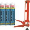 Dayanıklı plastik malzemeden üretilmiş silikon tabancası ve soudal marka 3 adet 500 ml beyaz mastik ile banyo ve mutfaklarınız da kolayca silikon ve mastik çekebilirsiniz.