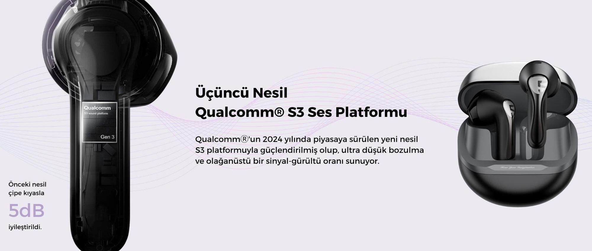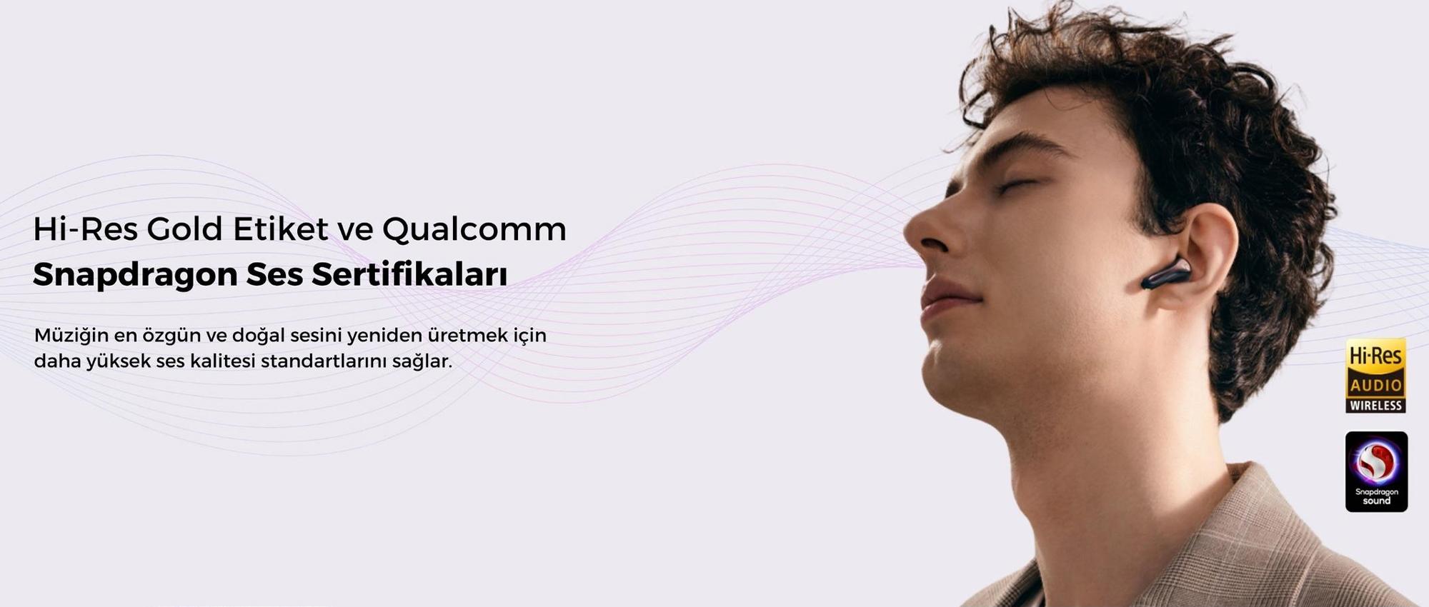 Qualcomm QCC3091 chipseti ve aptX Adaptive Lossless codec desteği ile yüksek çözünürlüklü (Hi-Res) ses kalitesi sağlar.