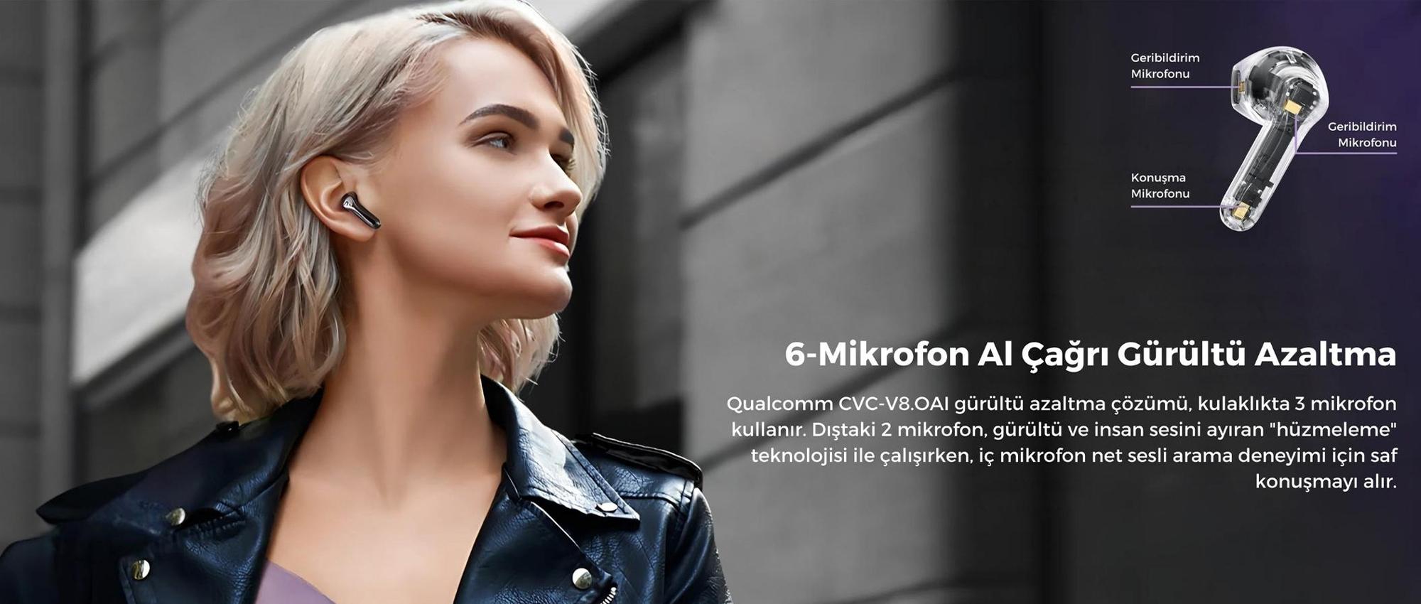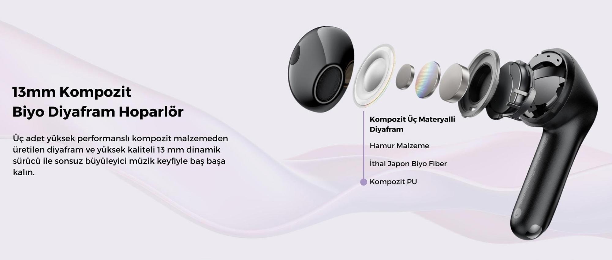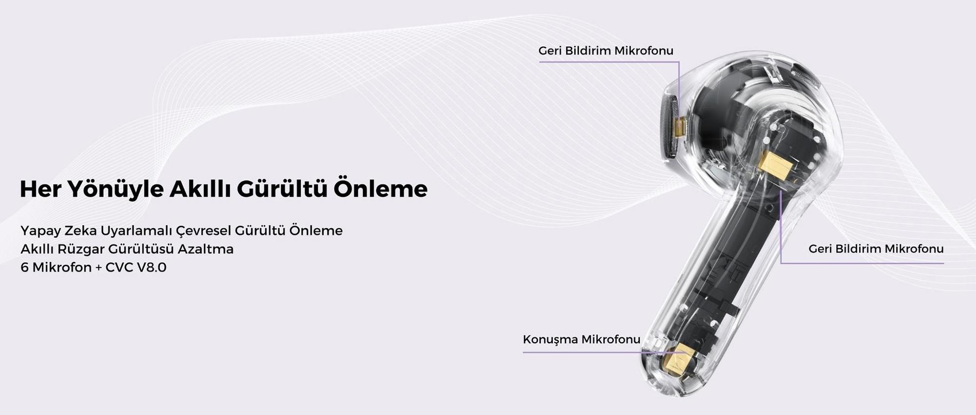 Dokunmatik kontrol paneli sayesinde müzik oynatma, arama yanıtlama, ANC modu değiştirme ve ses seviyesini kolayca yönetebilirsiniz.