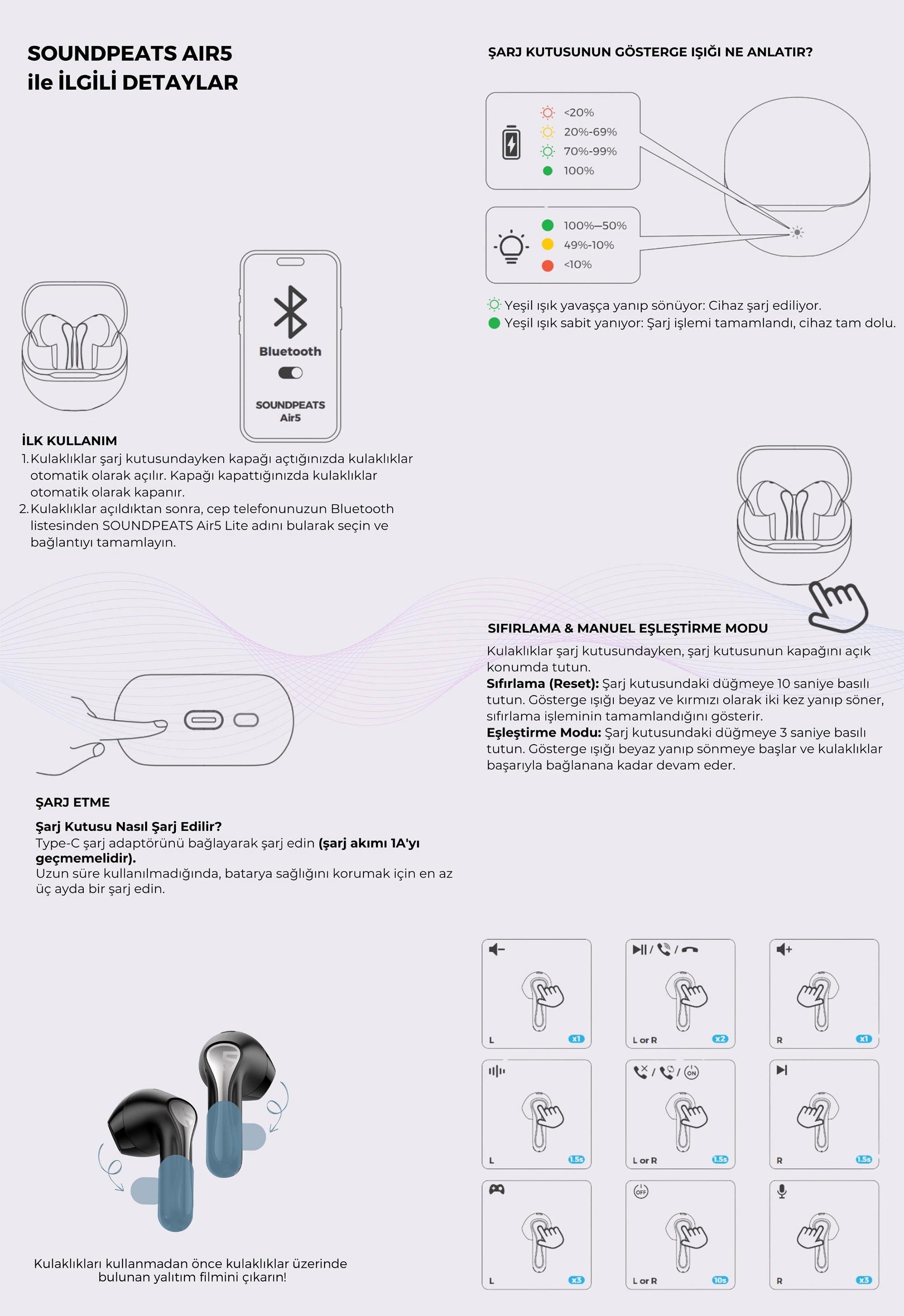 - 1 x SoundPEATS Air5 Kablosuz Kulaklık