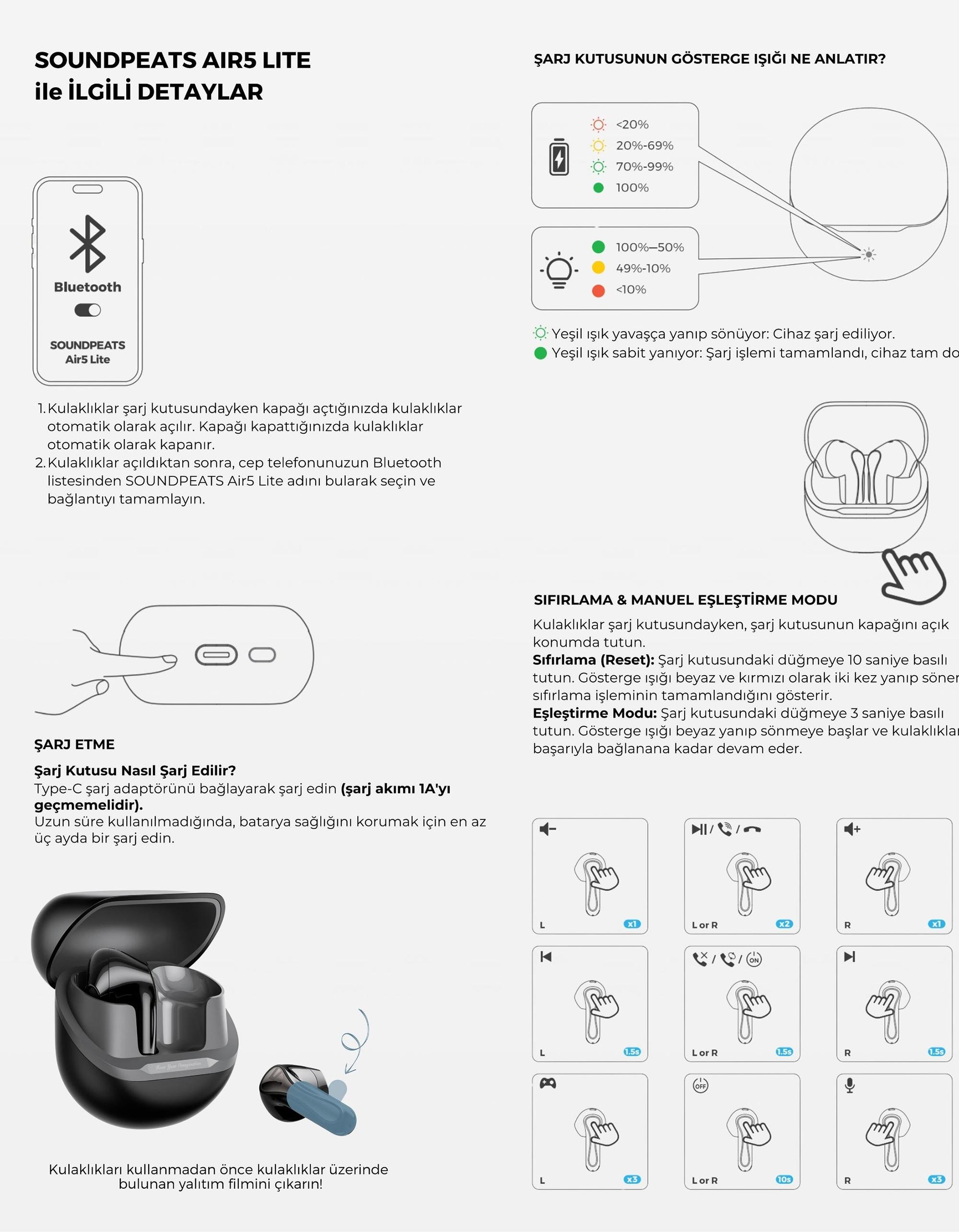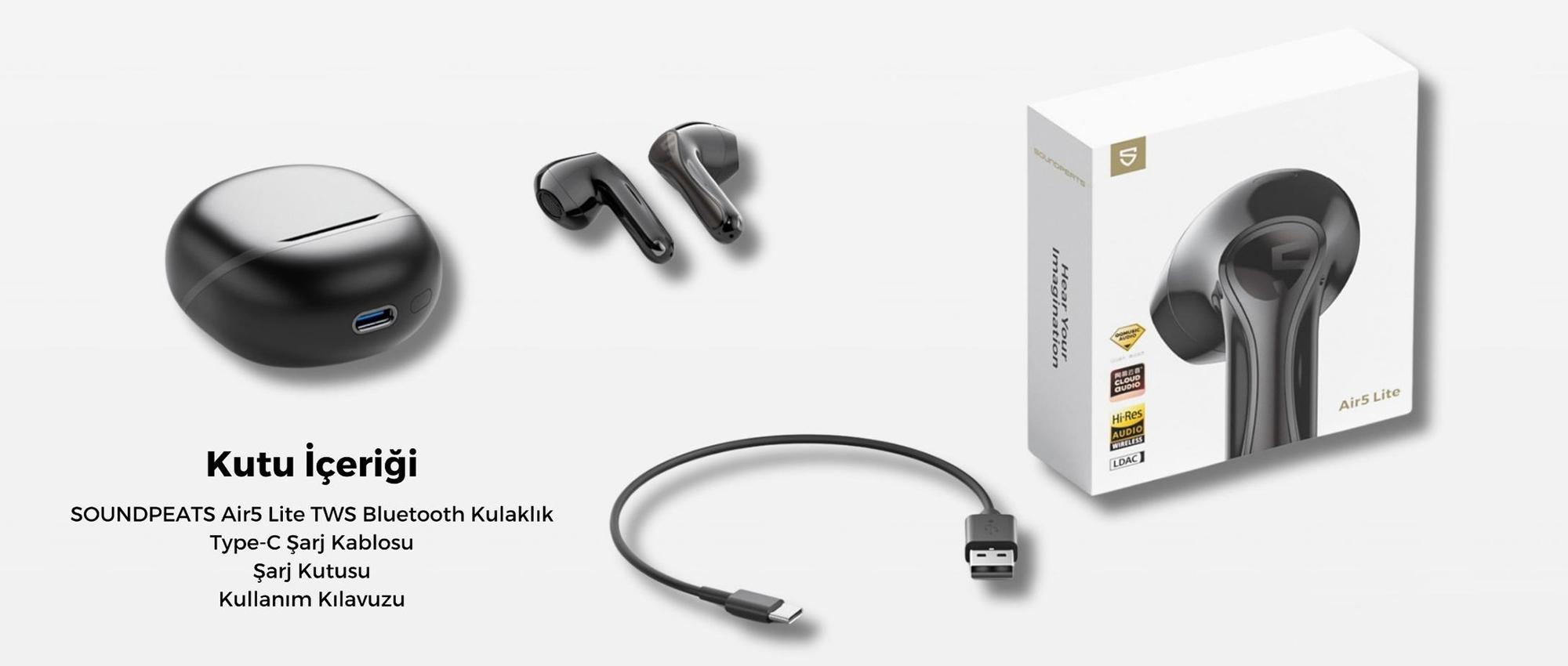 - 1 x SoudPEATS Air5 Lite Kablosuz Kulaklık