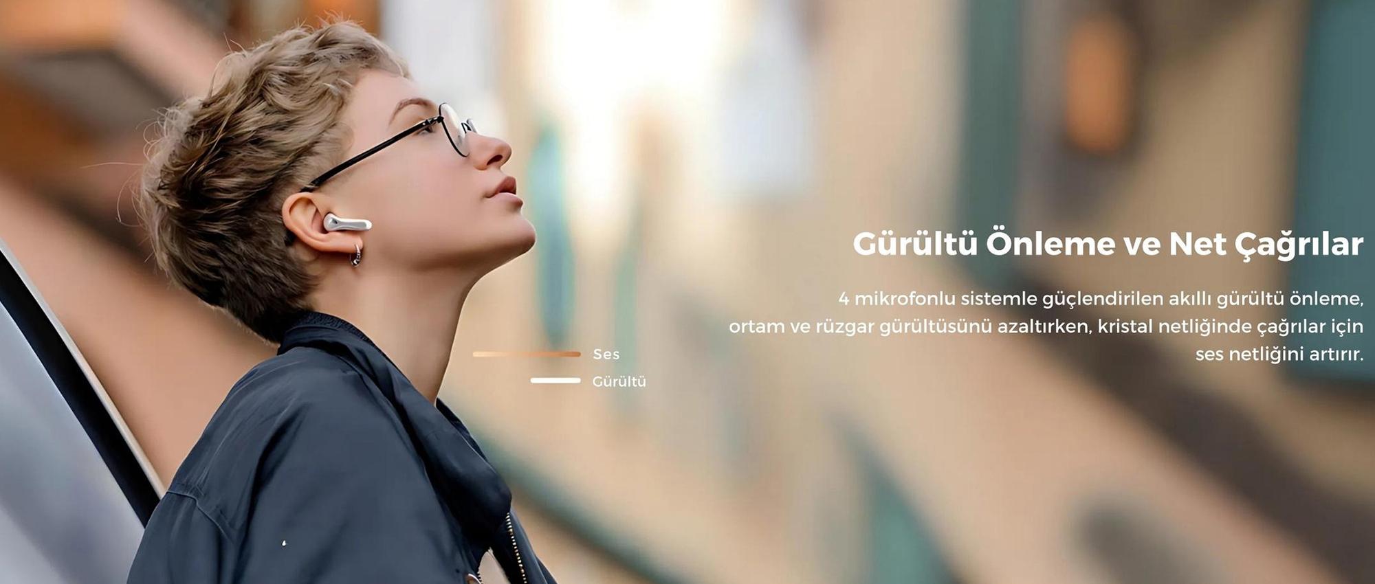 ENC (Environmental Noise Cancellation), dış ortam gürültüsünü azaltarak görüşmelerde daha net ve kaliteli ses iletimi sağlar.