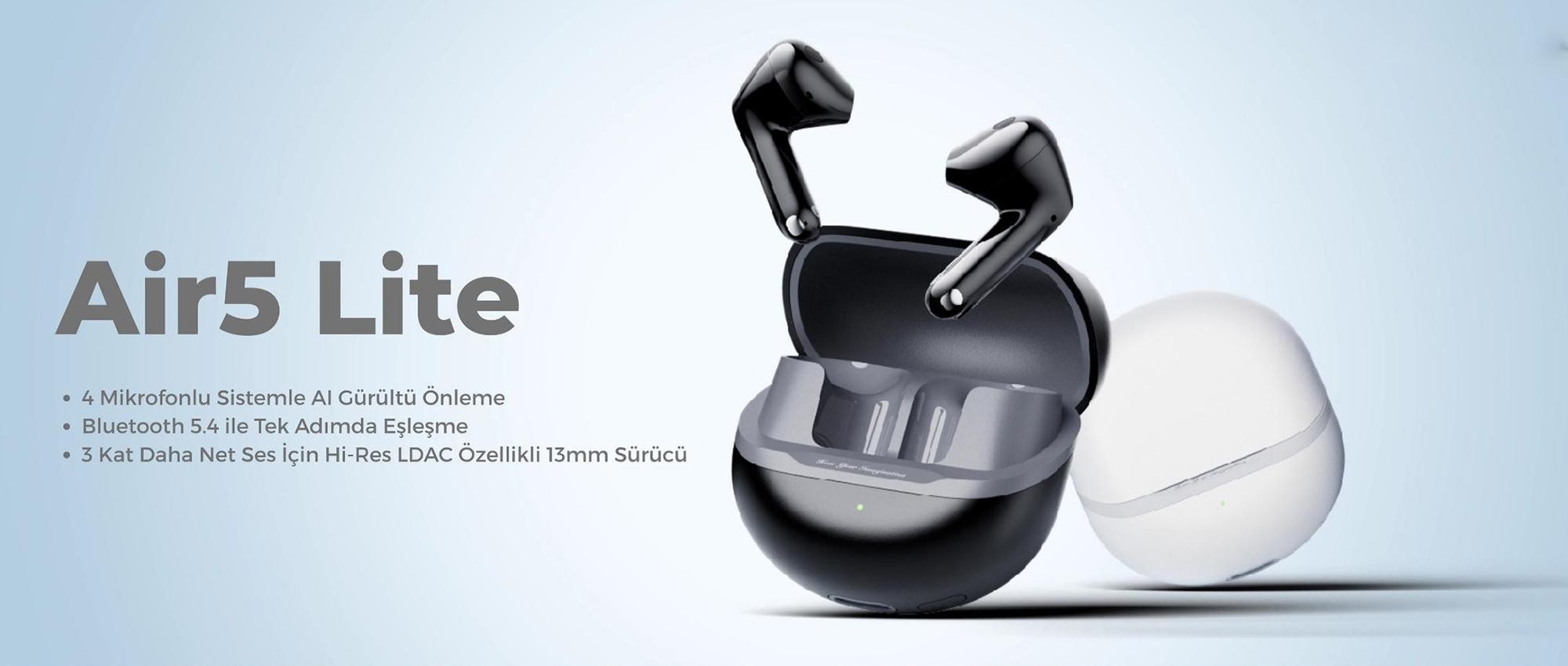 SoundPEATS Air5 Lite, modern tasarımı ve üstün ses kalitesiyle günlük kullanım için ideal bir Hi-Res destekli TWS kulaklıktır. Bluetooth 5.4 ve BT8932F chipset sayesinde hızlı ve stabil bağlantı sunarken, LDAC codec ve ENC teknolojisi ile yüksek çözünürlüklü ses ve net görüşmeler sağlar. Her biri 35 mAh bataryaya sahip kulaklıklar ve 400 mAh şarj kutusuyla toplamda 30 saate kadar kesintisiz kullanım sunar. IPX5 sertifikası sayesinde ter ve su sıçramalarına karşı dayanıklı olan Air5 Lite, yalnızca 4.47 gram ağırlığı ve dokunmatik kontrol özellikleriyle konforlu ve pratik bir deneyim sağlar.