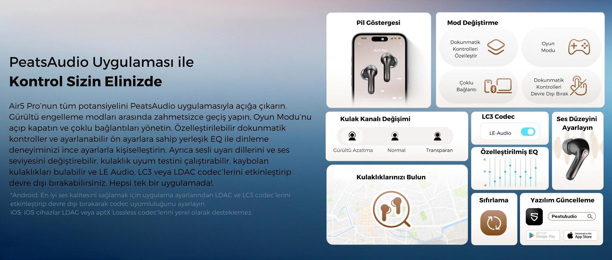 - Desteklenen Codec’ler: aptX Lossless, aptX Adaptive, LDAC, LC3 (LE Audio), AAC, SBC