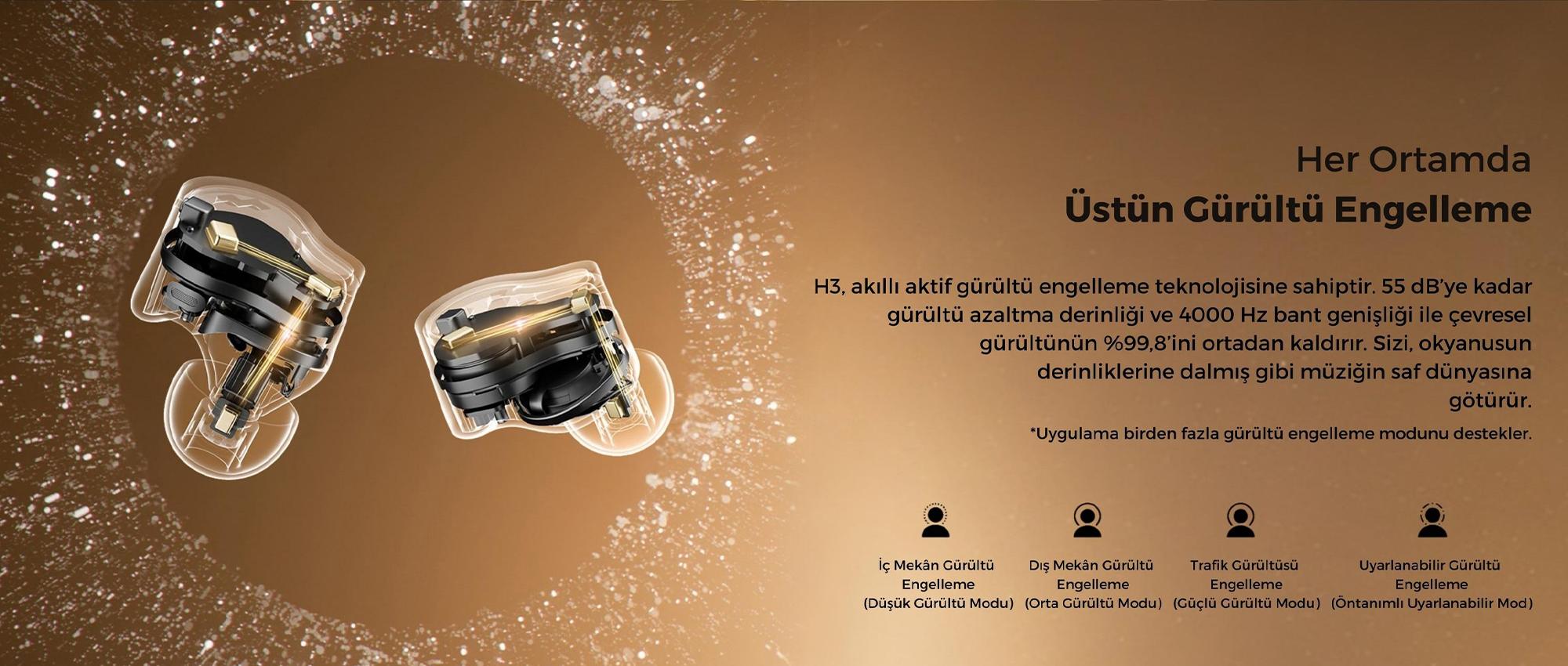 SoundPEATS H3’te gelişmiş ANC teknolojisi bulunur, böylece ortam gürültüsü azaltılarak daha net ve odaklı ses deneyimi sağlanır.