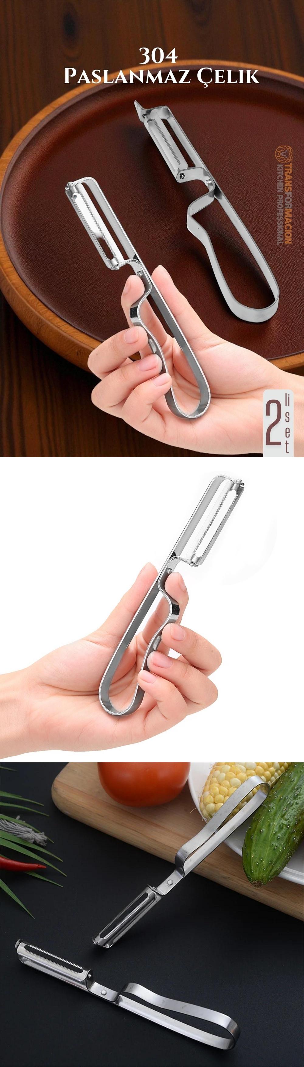 🥒 304 Paslanmaz Çelik Soyacak Seti – 2’li | Ergonomik Tasarım | Transformacion Kitchen Professional