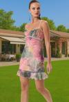 Bu nefes kesici mini elbise, yaz gecelerinin ve özel davetlerin yıldızı olmak için tasarlandı. Çok renkli soyut desenleri ve zarif volan detayı ile göz alıcı bir görünüm sunuyor. Hafif ve ince tül kumaşı, teninize adeta dokunarak muhteşem bir uyum sağlar. Kendinizi özel ve rahat hissetmenizi sağlayacak şekilde tasarlanmıştır.
