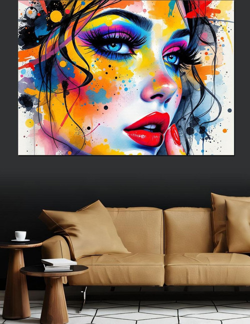 Soyut Renkli Kadın Portresi Dekoratif Kanvas - Mdf Ahşap Tablo