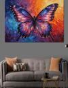 Soyut Renkli Mor Kelebek Dekoratif Kanvas - Mdf Ahşap Tablo